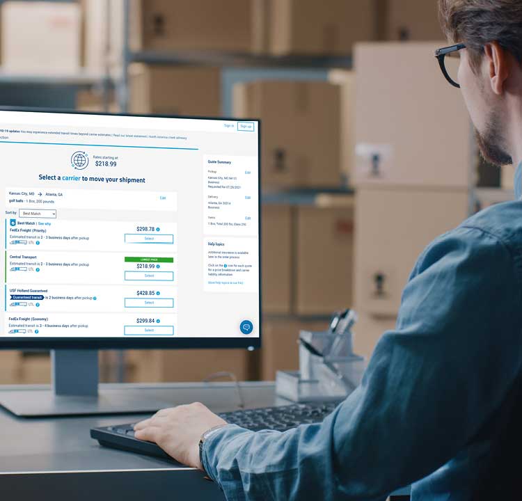 Ahorre tiempo y dinero mientras accede a transportistas contratados de alta calidad examinados con Freightquote ® de CH Robinson. Simplifique y automatice la forma en que cotiza y reserva sus envíos a cualquier lugar de América del Norte. Freightview ® , nuestro TMS para pequeñas empresas, lo ayuda a comparar sus tarifas directas y reservar el transportista que desea.